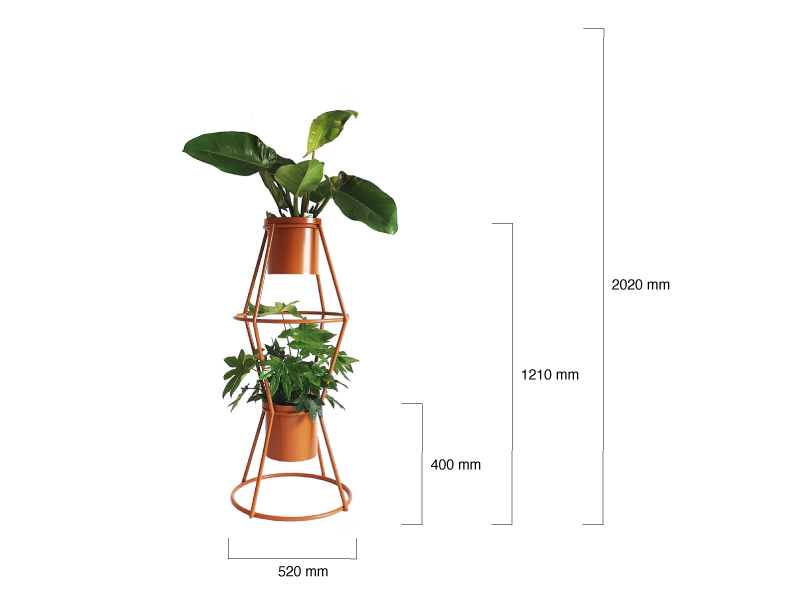 The Totem collection of planters refers to the forms of Romanian artist Constantin Brâncuși. The repetition and monumentality of the flower modules organizes and organises the space. Plants penetrate its structure, fill it and thus complement the column.