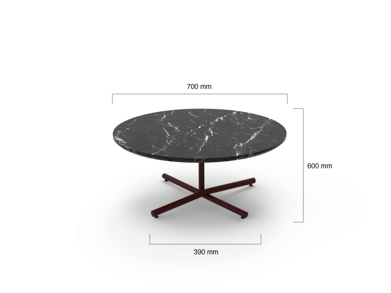W wersji niskiej stoliki są bardzo rozłożyste - dominują pięknie wykończoną powierzchnią. Wspaniały detal krzyżowania się stalowych rur sprawia, że ich odbiór jest bardzo personalny. Mimo drobnej konstrukcji są bardzo stabilne i dobrze służą przy sofie.