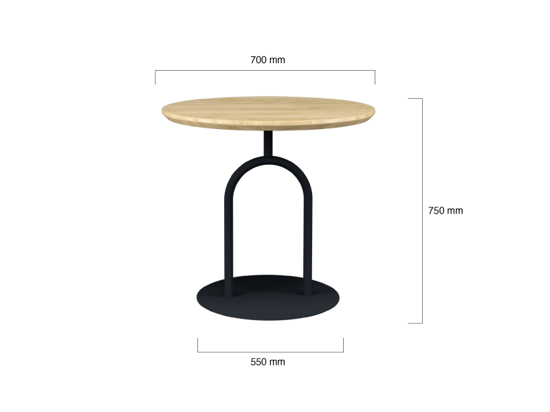 Drewniany, lity blat wykończony jest delikatnym frezem skierowanym ku podłożu, aby wysmuklić sylwetkę bryły stolika.