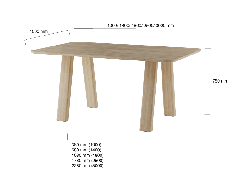 Ze względu na mocną konstrukcję stół drewniany skoV może występować w dużych rozmiarach, pełniąc klasyczną rolę common table. Może być stołem rodzinnym, stołem konferencyjnym czy stołem pracowniczym.